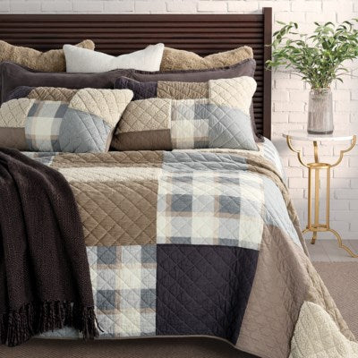 • Authentic patchwork quilt in shades of grey, taupe and beige