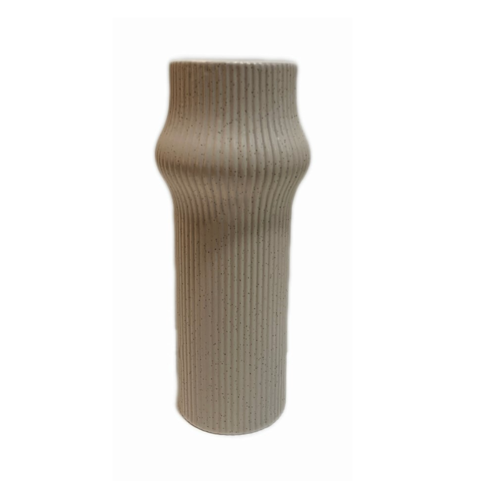 Finished in a warm, speckled neutral glaze, it offers an earthy, organic feel. Its softly tapered shape makes it a versatile accent piece, perfect for displaying fresh stems or styling on its own in modern or minimalist spaces.