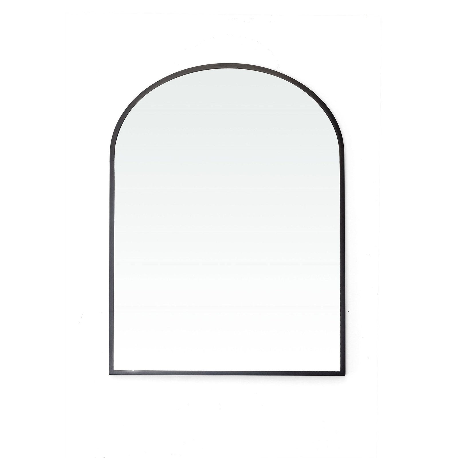 Lovely Arched Mirror.  Black frame is very subtly distressed in a few places. Hanging hardware in stalled on back.