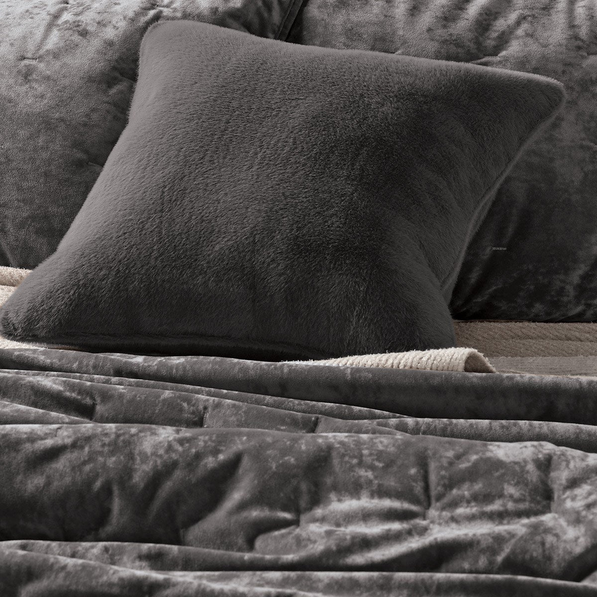 • Solid charcoal velvet quilt