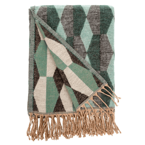 This modern graphic throw with fine fringed edges is double-sided, displaying a contrasting version of color and design on each side. Rich hues and modern patterns offer a fresh, bold, and fashionable textile. Did we mention its also unbelievable soft?